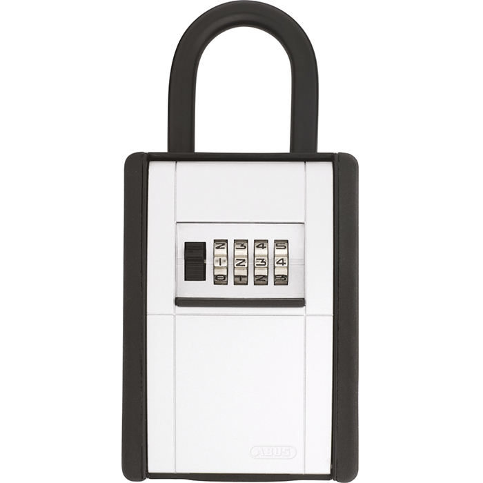 Nøkkelboks i solid metall m/bøyle. Bøyle er PVC beskyttet. 4 rullerende kodehjul m/dekksel for kodehjul. Omstillbar. Holder opptil 14 kort eller 20 nøkler.